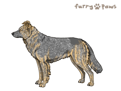 | Color: | Roaned Brindle Fawn and White (Extreme Piebald) with Blue Saddle and Mask |