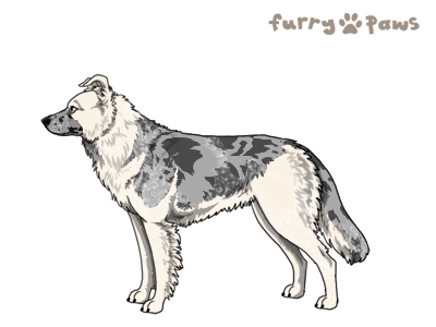 Color: | Roaned Silver Merle and White (Piebald) with Blue Saddle and Mask |