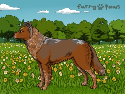 Color: | Roaned Red Merle and White (Irish) with Blue Sable |