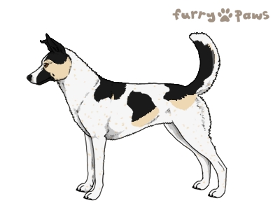 Color: | Cream and White (Piebald) with Black Saddle, Mask, Ticking, and Light Undersides |