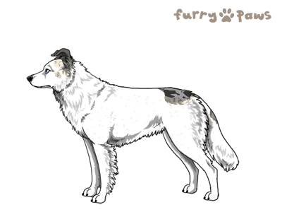 Color: | Brindle Silver Merle and White (Extreme Piebald) with Blue Sable and Ticking |