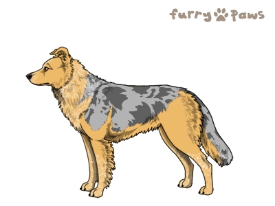 | Color: | Roaned Fawn Merle and White (Irish) with Blue Saddle |
