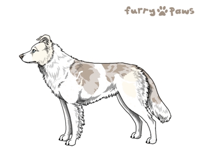 | Color: | Silver Merle and White (Piebald) with Isabella Saddle and Ticking |