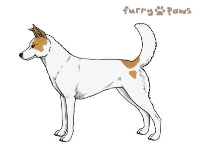 | Color: | Fawn and White (Extreme Piebald) with Steel Blue Grizzle and Light Undersides |