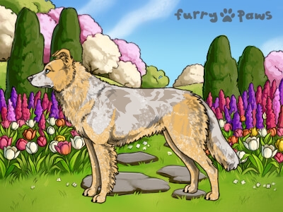 | Color: | Roaned Brindle Fawn Merle and White (Piebald) with Isabella Saddle and Mask |