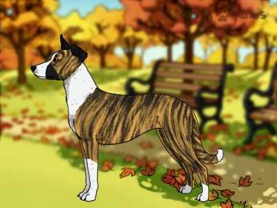 Brindle Red and White (Piebald) with Chocolate Sable, Mask, and Ticking