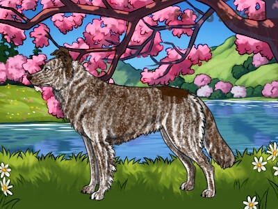 Brindle Silver and White (Irish) with Isabella Sable and Ticking