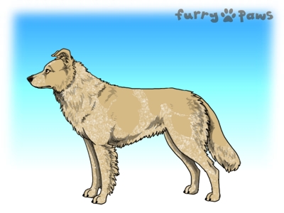 Roaned Fawn Merle and White (Irish) with Blue Saddle and Mask