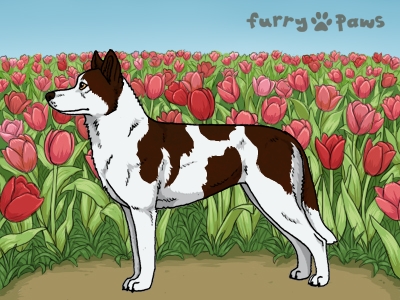 | Color: | Red and White (Piebald) with Chocolate Grizzle and Light Undersides |