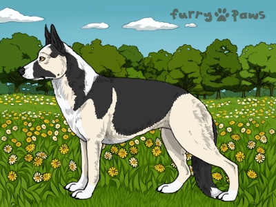 | Color: | Silver and White (Irish) with Blue Saddle and Mask |