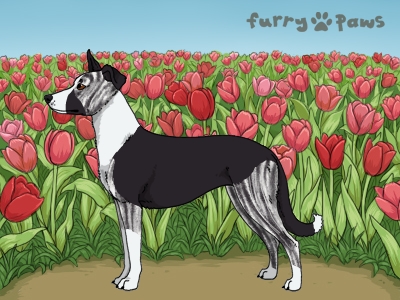 Color: | Brindle Silver and White (Irish) with Black Saddle and Mask |