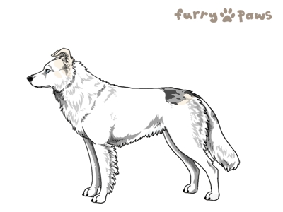 | Color: | Silver Merle and White (Extreme Piebald) with Blue Saddle |