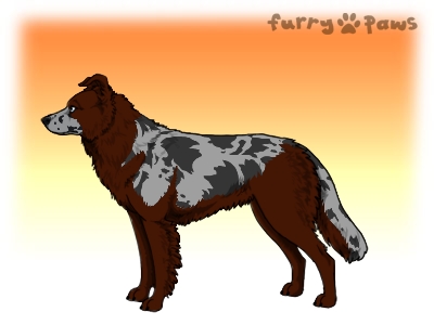 | Color: | Red Merle with Blue Saddle and Mask |
