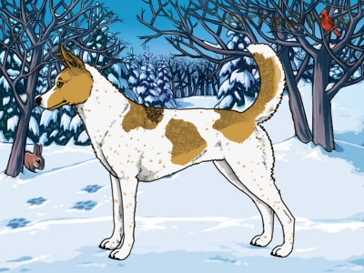 | Color: | Fawn and White (Piebald) with Black Grizzle, Ticking, and Light Undersides |