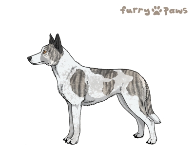 | Color: | Brindle Silver and White (Piebald) with Blue Grizzle, Mask, and Light Undersides |