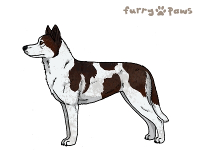 | Color: | Red and White (Piebald) with Black Grizzle and Light Undersides |