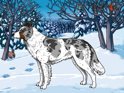 Color:Blue Merle and White (Piebald) with Red Points and Ticking