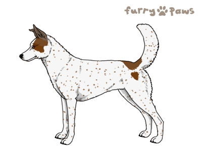 | Color: | Red and White (Extreme Piebald) with Steel Blue Sable, Ticking, and Light Undersides |