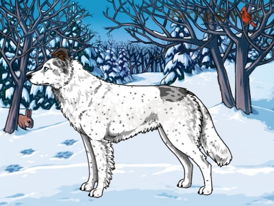 | Color: | Blue Merle and White (Extreme Piebald) with Red Points and Ticking |