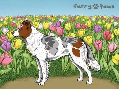 | Color: | Red Merle and White (Piebald) with Blue Saddle and Ticking |