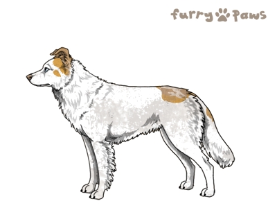 Color: | Fawn Merle and White (Extreme Piebald) with Isabella Sable and Mask |