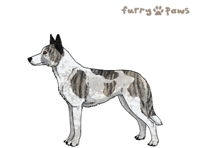 | Color: | Brindle Silver and White (Piebald) with Black Grizzle, Mask, and Light Undersides |