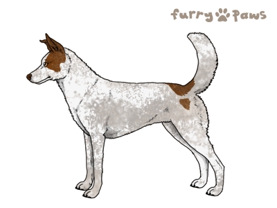 Color: | Red and White (Extreme Piebald) with Chocolate Grizzle, Mask, and Light Undersides |