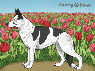 | Color: | Silver and White (Piebald) with Blue Saddle and Mask |