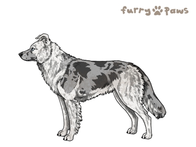 | Color: | Roaned Brindle Silver Merle and White (Irish) with Blue Saddle and Mask |