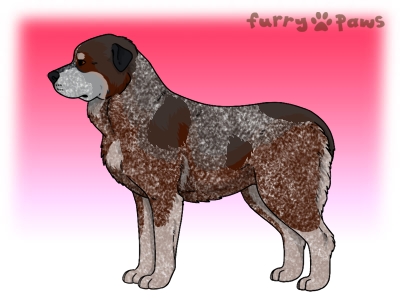 Color: | Roaned Red and White (Piebald) with Steel Blue Sable, Mask, and Light Undersides |