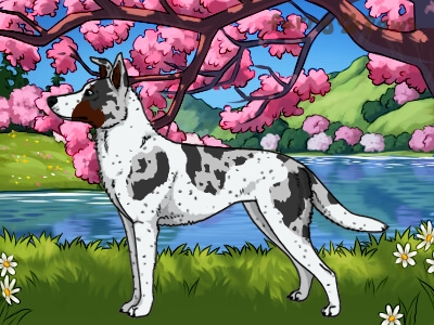 Color: | Blue Merle and White (Piebald) with Red Points and Ticking |