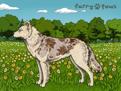 | Color: | Roaned Cream Merle and White (Extreme Piebald) with Chocolate Saddle |