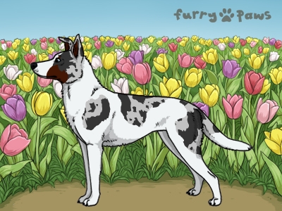 Color: | Blue Merle and White (Piebald) with Red Points |