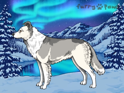 | Color: | Silver and White (Irish) with Blue Sable |