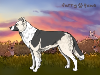 | Color: | Silver and White (Irish) with Blue Saddle and Mask |