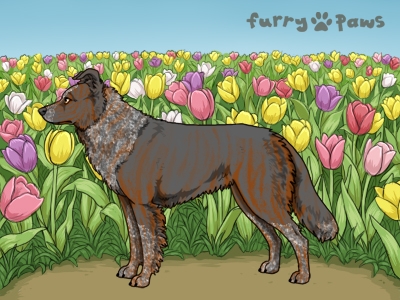 | Color: | Roaned Brindle Red and White (Irish) with Blue Sable |