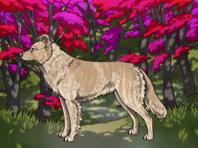 Color: | Roaned Brindle Cream and White (Piebald) with Isabella Sable and Mask |