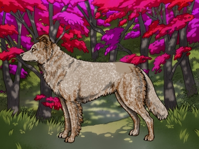 Color: | Roaned Brindle Red and White (Extreme Piebald) with Isabella Saddle and Mask |