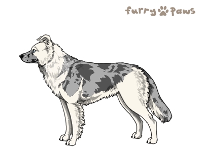 | Color: | Roaned Silver Merle and White (Irish) with Blue Saddle and Mask |