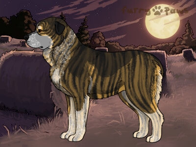 Color: | Roaned Brindle Fawn and White (Irish) with Black Grizzle, Mask, and Light Undersides |