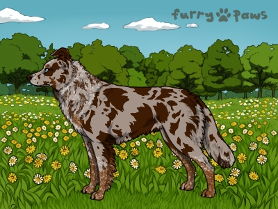 | Color: | Roaned Chocolate Merle and White (Irish) with Red Points and Mask |