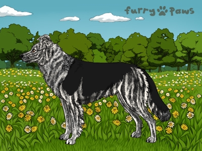 | Color: | Roaned Brindle Silver and White (Irish) with Black Saddle |