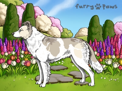 | Color: | Silver Merle and White (Piebald) with Isabella Sable and Ticking |