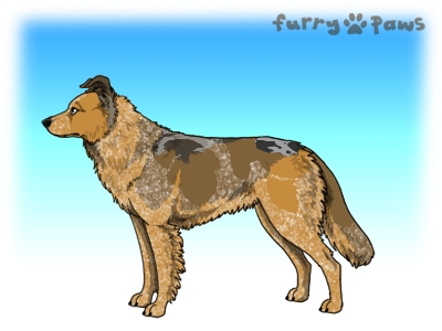 | Color: | Roaned Fawn Merle and White (Piebald) with Blue Sable |