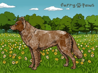 | Color: | Roaned Brindle Red Merle and White (Piebald) with Isabella Sable |