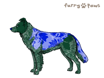 | Color: | Roaned Silver Merle and White (Piebald) with Blue Saddle |