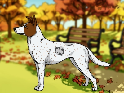 | Color: | Red Merle and White (Extreme Piebald) with Blue Saddle and Ticking |