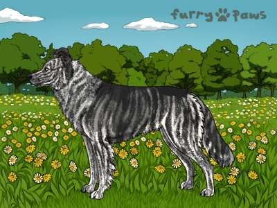| Color: | Roaned Brindle Silver and White (Irish) with Black Sable |