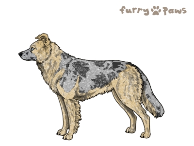 Color: | Roaned Brindle Cream Merle and White (Extreme Piebald) with Blue Saddle and Mask |