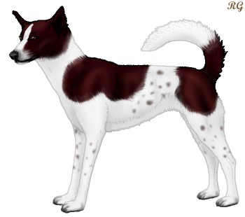 Color: | Red and White (Piebald) with Black Sable, Mask, Ticking, and Light Undersides |